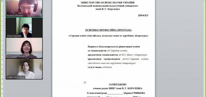 Засідання робочої групи з оновлення освітньо-професійної програми «Середня освіта (Англійська, польська мови та зарубіжна література)» першого (бакалаврського) рівняв навчально-науковому інституті іноземних мов