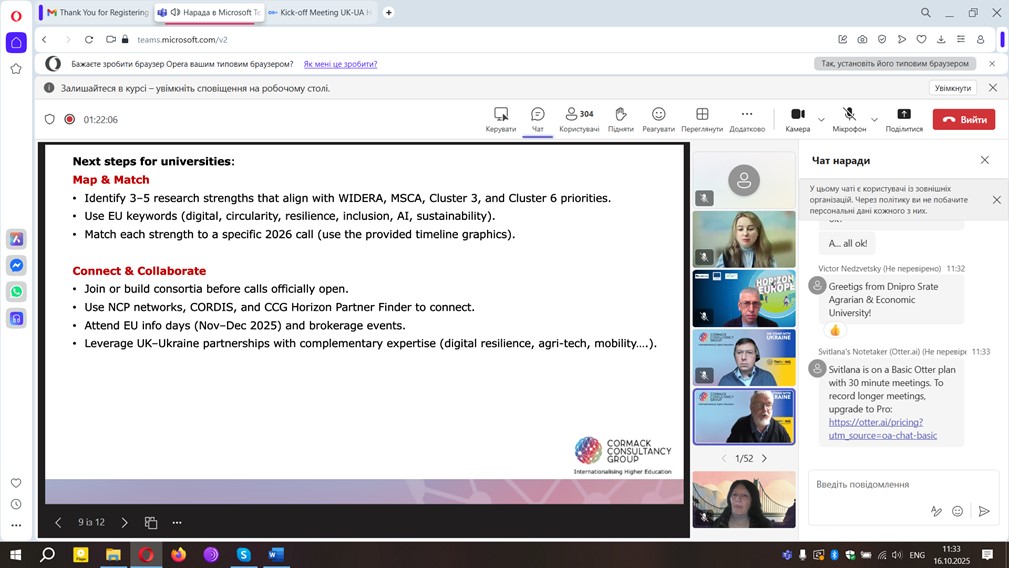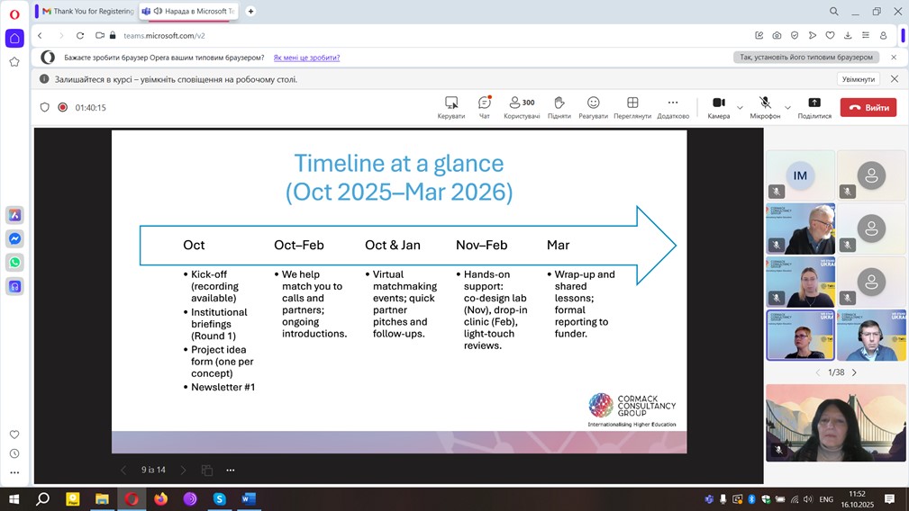 Під час зустрічі, присвяченої новим можливостям для українських наукових і освітніх установ у межах програм ЄС, зокрема Horizon Europe, учасники обговорили напрями міжнародної співпраці з британськими колегами.
