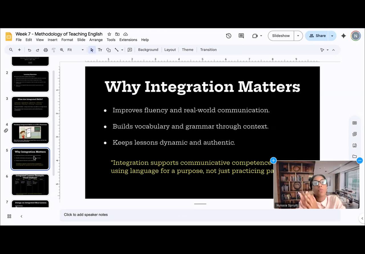 Сьомий навчальний тиждень з американською викладачкою Nyissia Spruill вирізняється активною розробкою навичок, інтегрованих в освітній процес, та їхньою значущістю для індивідуальної траєкторії здобувача.