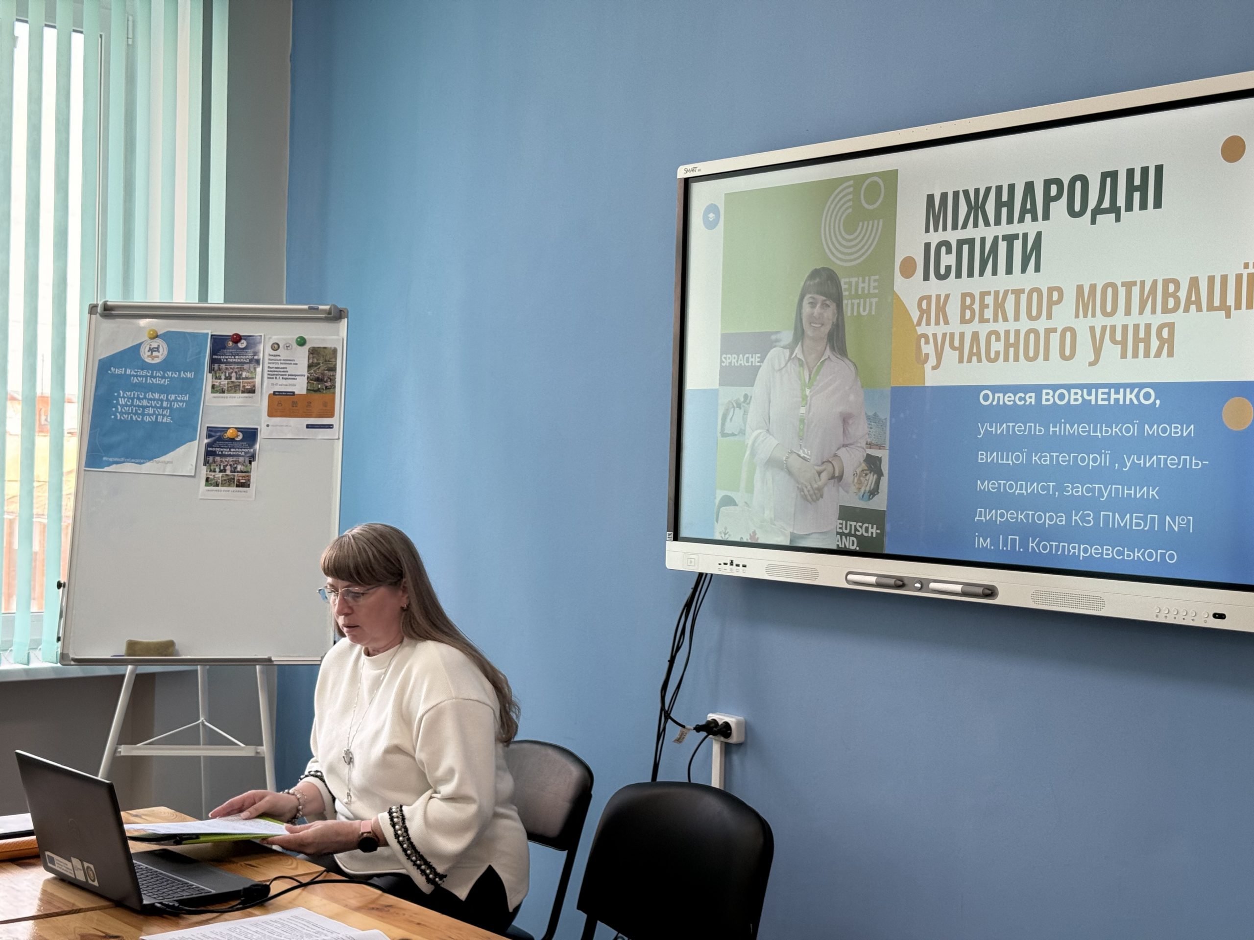 Виступ заступника директора КЗ «Полтавський міський багатопрофільний ліцей № 1 ім. І. П. Котляревського Полтавської міської ради Полтавської області Олесі Вовченко присвячений ролі міжнародних іспитів як потужного мотиваційного чинника й ефективного інструмента підготовки сучасного учня до академічних і життєвих викликів.