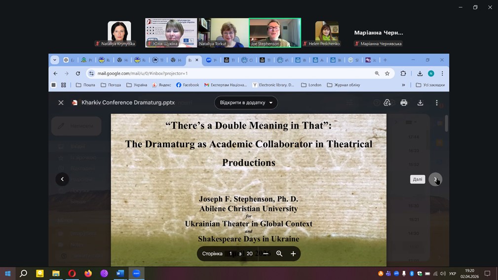 2 квітня 2026 р. відбулася відкрита лекція відомого американського шекспірознавця, професора Джозефа Стівенсона (Joseph Stephenson, Abilene Christian University, штат Техас, США) на тему “There’s a Double Meaning in That”: The Dramaturg as an Academic Collaborator in the Theatrical Productions.