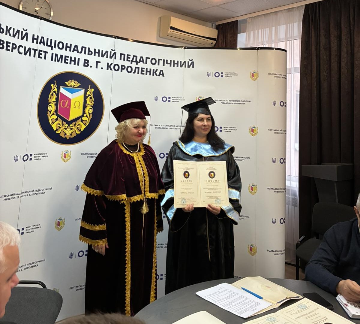 23 грудня 2025 року на зборах трудового колективу Полтавського педагогічного університету ректорка Марина Гриньова урочисто вручила атестат професора кафедри англійської та німецької філології докторці філологічних наук Марині Зуєнко.