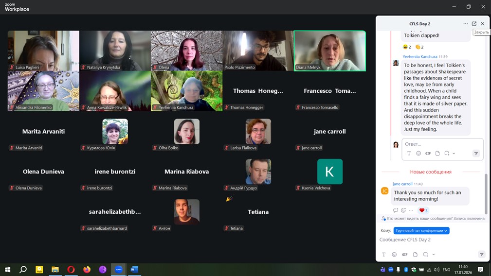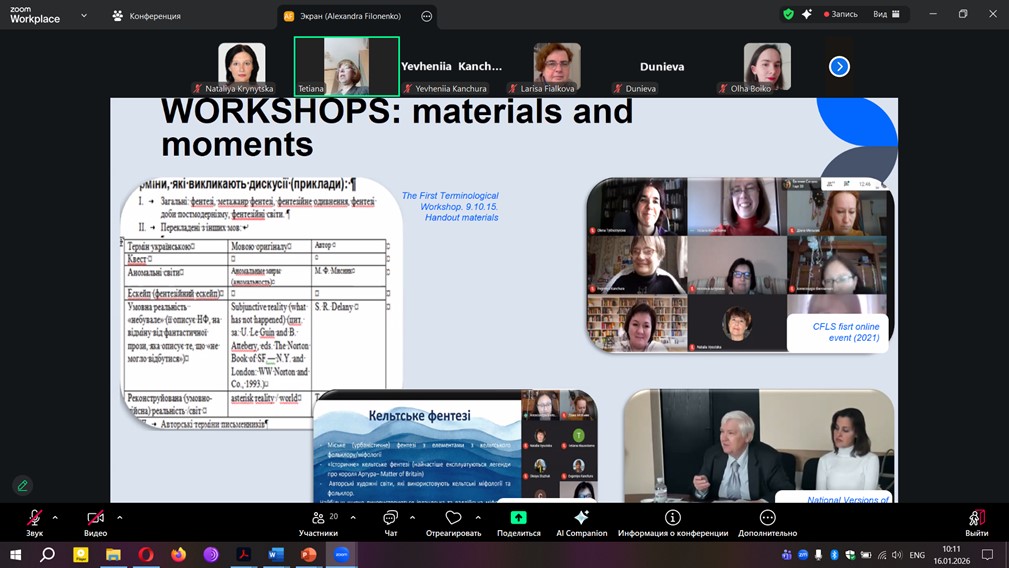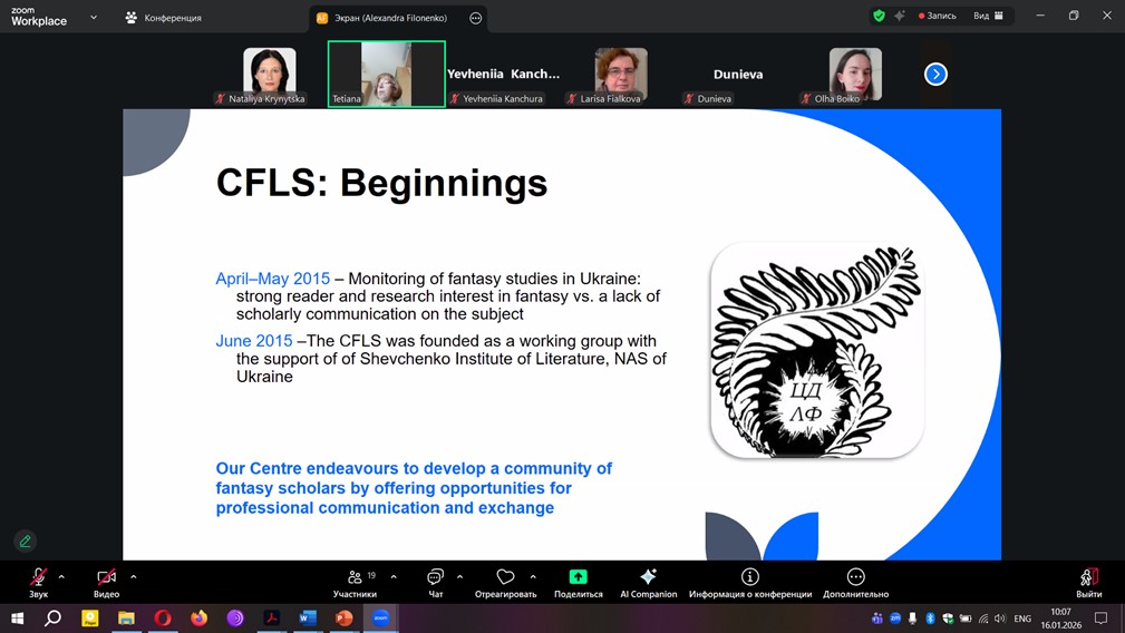 16–17 січня 2026 року в Центрі дослідження літератури фентезі Інституту літератури ім. Т. Г. Шевченка НАН України спільно з Державним університетом «Житомирська політехніка» та Atatürk Üniversitesi (м. Ерзурум, Туреччина) відбулася V Міжнародна англомовна онлайн-конференція «Теоретичні аспекти дослідження літератури фентезі. Музика, танці та театр у фентезійних світах: роль розваг у світобудові та магічних системах» (Theoretical Aspects of Fantasy Literature Studies: Music, Dance and Theatre in Fantasy Worlds: The Role of Entertainment in World-Building and Magic Systems).