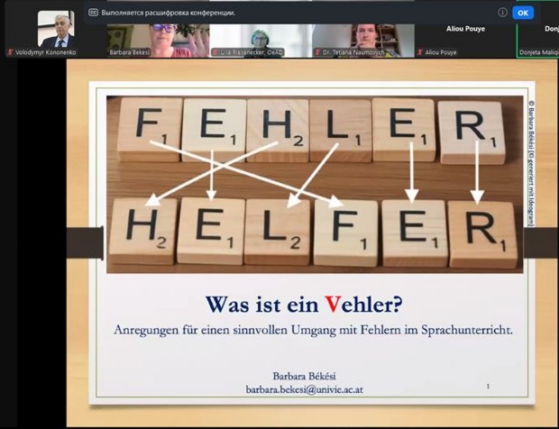 Європейському дню мов присвячено й вебінар «Was ist ein Vehler? Anregungen für einen sinnvollen Umgang mit Fehlern im Sprachunterricht», проведений 25 вересня 2025 року Австрійською агенцією з питань освіти та інтернаціоналізації (OeAD), провідною організацією Австрії в галузі міжнародної співпраці в освіті, науці та дослідженнях. Учасники, серед них і доцент кафедри романо-германської філології Володимир Кононенко, обговорили конструктивні пропозиції щодо виваженого ставлення до помилок у навчанні мови.